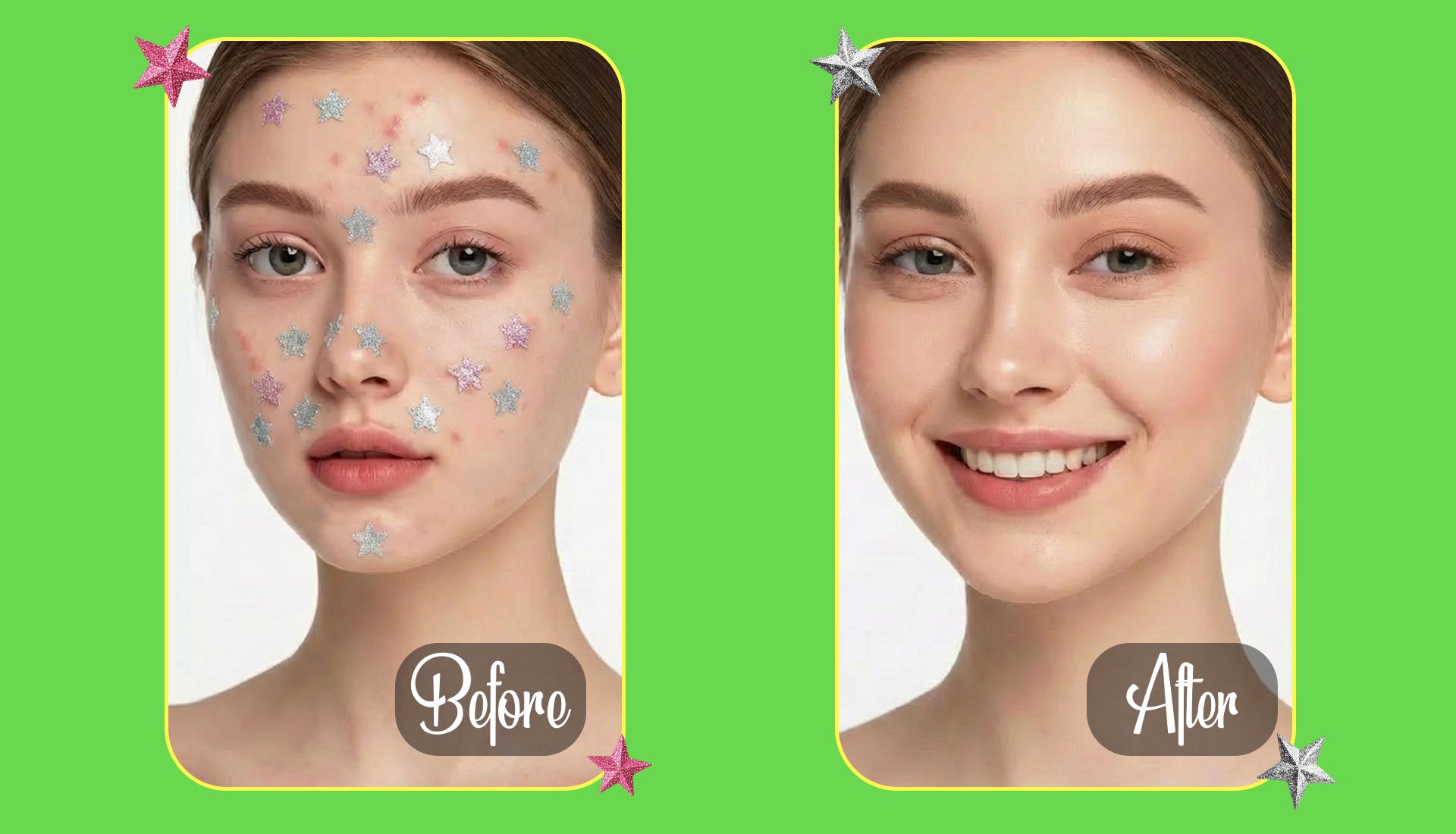 Place one glitter star directly over the pimple or whitehead, pressing lightly to ensure it seals.