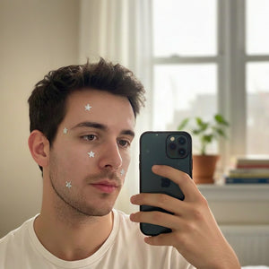 Place one glitter star directly over the pimple or whitehead, pressing lightly to ensure it seals